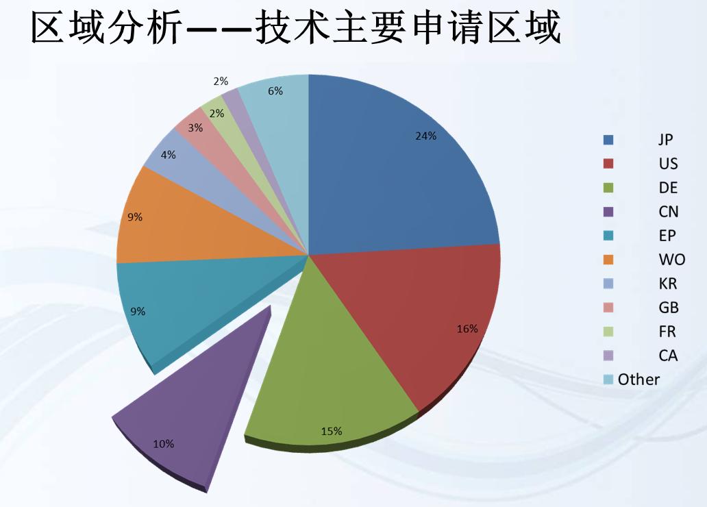 3.专利布局分析-得出拥有该领域技术的优势地区和薄弱地区。