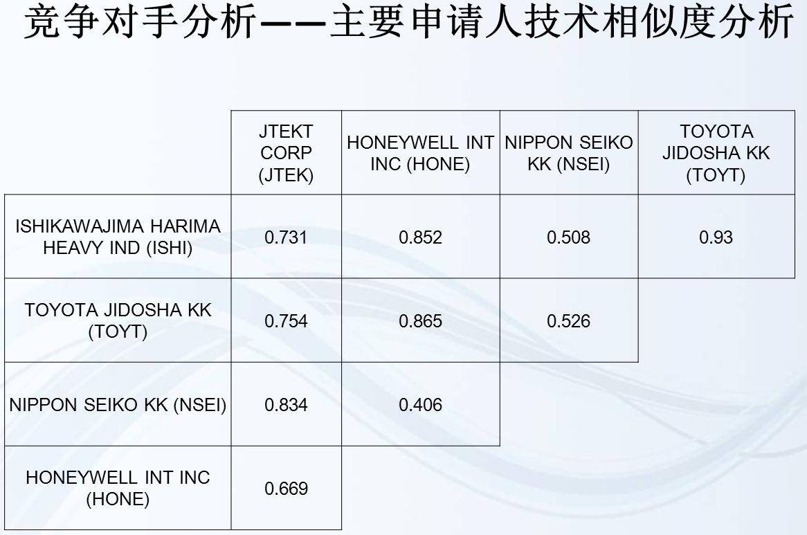 4.竞争对手分析-找出主要竞争对手,并获得主要竞争对手申请专利的年代范围、专利相对产出率、竞争对手的竞争力强弱、主要技术构成、技术研发重点、近期申请专利的活跃程度等信息。